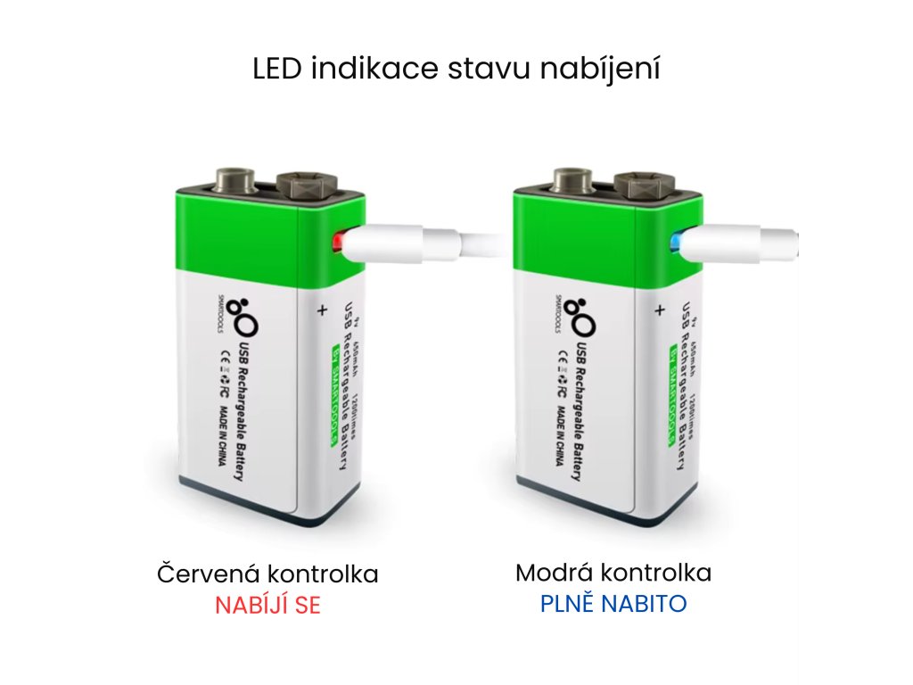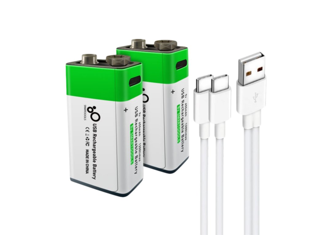 9V dobíjecí baterie Smartools, USB-C dobíjení, kapacita 650mAh, Li-Ion, 1200 cyklů, 2 kusy v balení