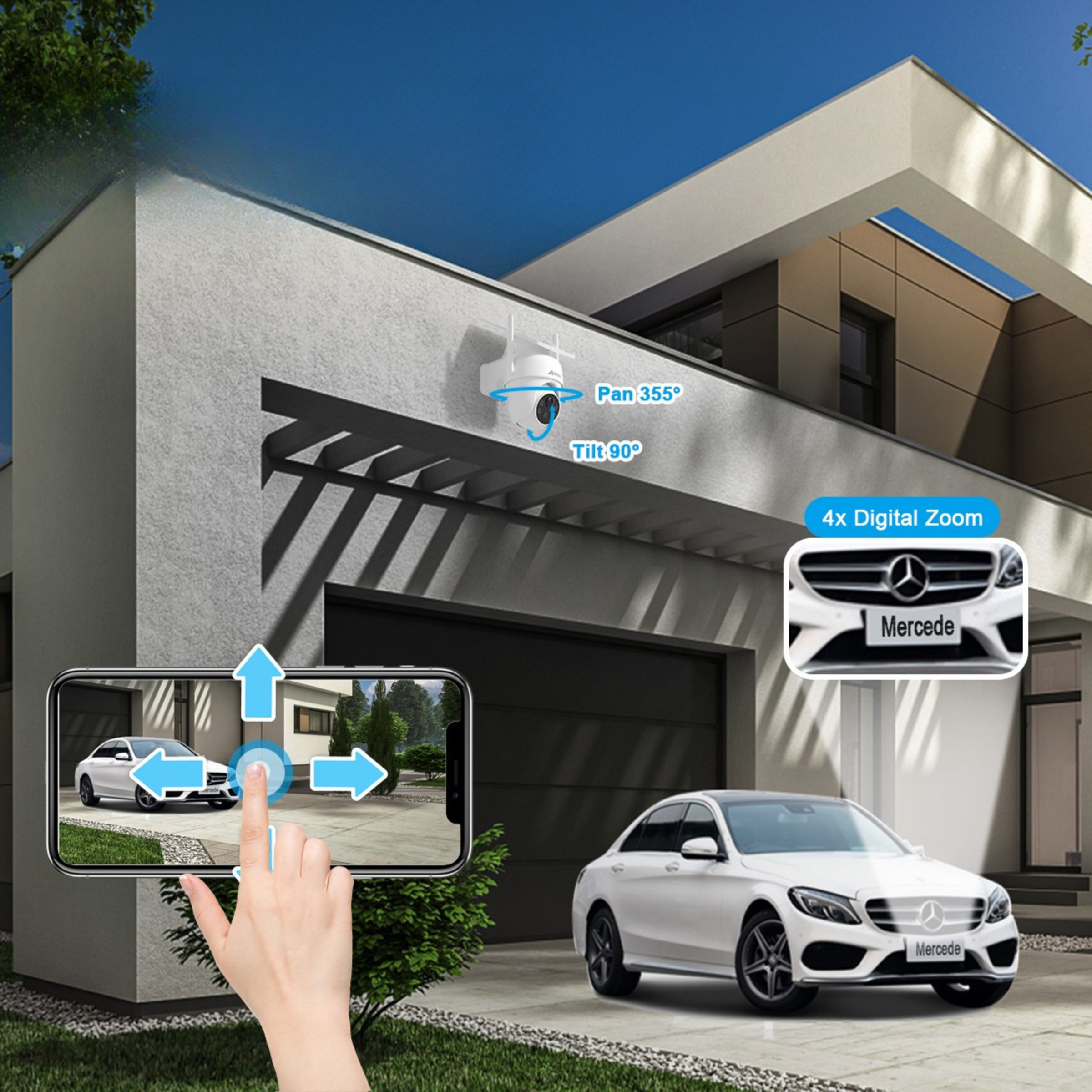 Kamera ANRAN Q4-J40W zaznamenává čistý a ostrý obraz v rozlišení 2K QHD (4MP – 2560×1440px) ve dne, v noci i za zhoršené viditelnosti, například při dešti nebo v mlze – a to až na vzdálenost 15 metrů. Objektiv s 3,6mm čočkou a CMOS senzorem snímá širokoúhlý obraz se zorným úhlem 100°. V kombinaci s elektronickým otáčením v rozsahu 350° horizontálně a 90° vertikálně je kamera schopná monitorovat prakticky veškerý prostor v okolí bez "slepých oblastí". Pro přiblížení detailů je k dispozici 4× digitální zoom, se kterým snadno rozpoznáte registrační značky aut i obličeje lidí.“