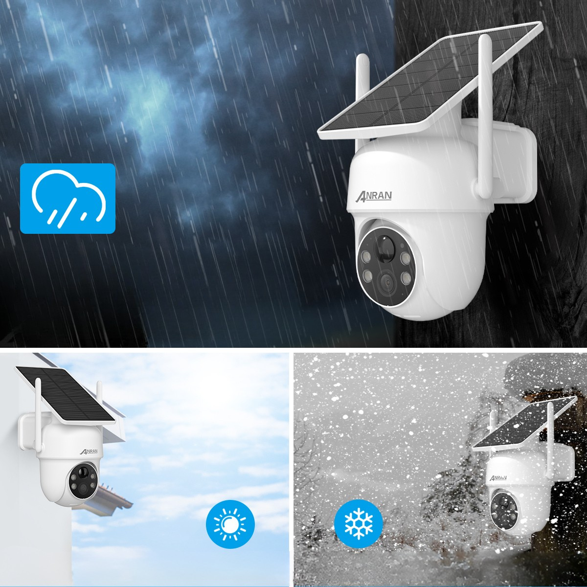 Bateriová záznamová WiFi kamera ANRAN Q4-J40W ochrání Váš majetek a zároveň zajistí přehled o aktuálním dění i na místech, kde není zdroj elektřiny, nebo by jeho instalace byla zbytečně komplikovaná. Napájení kamery zajišťuje baterie s kapacitou 9600mAh a zpětné dobíjení solární panel s výkonem 3W, který je součástí těla kamery. Kamera má vodotěsnou konstrukci s certifikací IP66, která odolá dešti, sněhu, mlze a dalším přímým klimatickým vlivům.