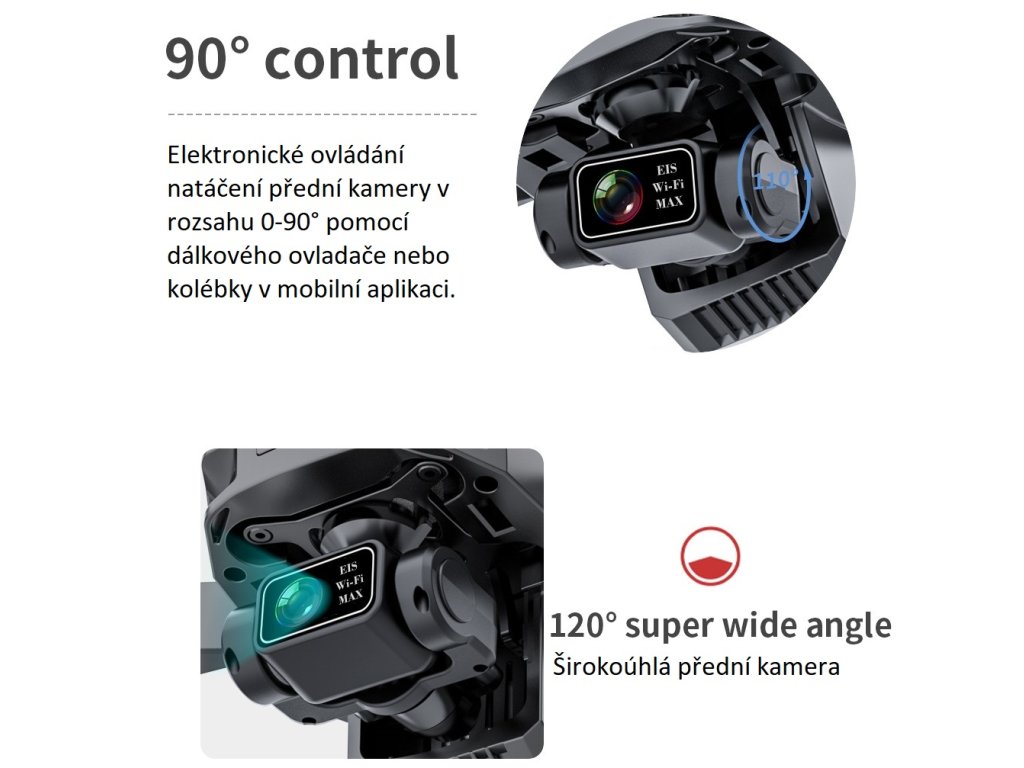 Perfektní ostré záběry pořídíte kamerou s rozlišením až 4K při 25fps. Mechanickou stabilizaci obrazu zajišťuje 3osý Gimbal přední kamery s EIS (electronic image stabilization) elekronickou stabilizací. Video a fotografie lze ukládat na SD kartu s kapacitou až 128GB nebo přímo do paměti mobilního telefonu. Postprodukční úpravy videa a fotografií je možné provést přímo v mobilní aplikaci VS GPS PRO.