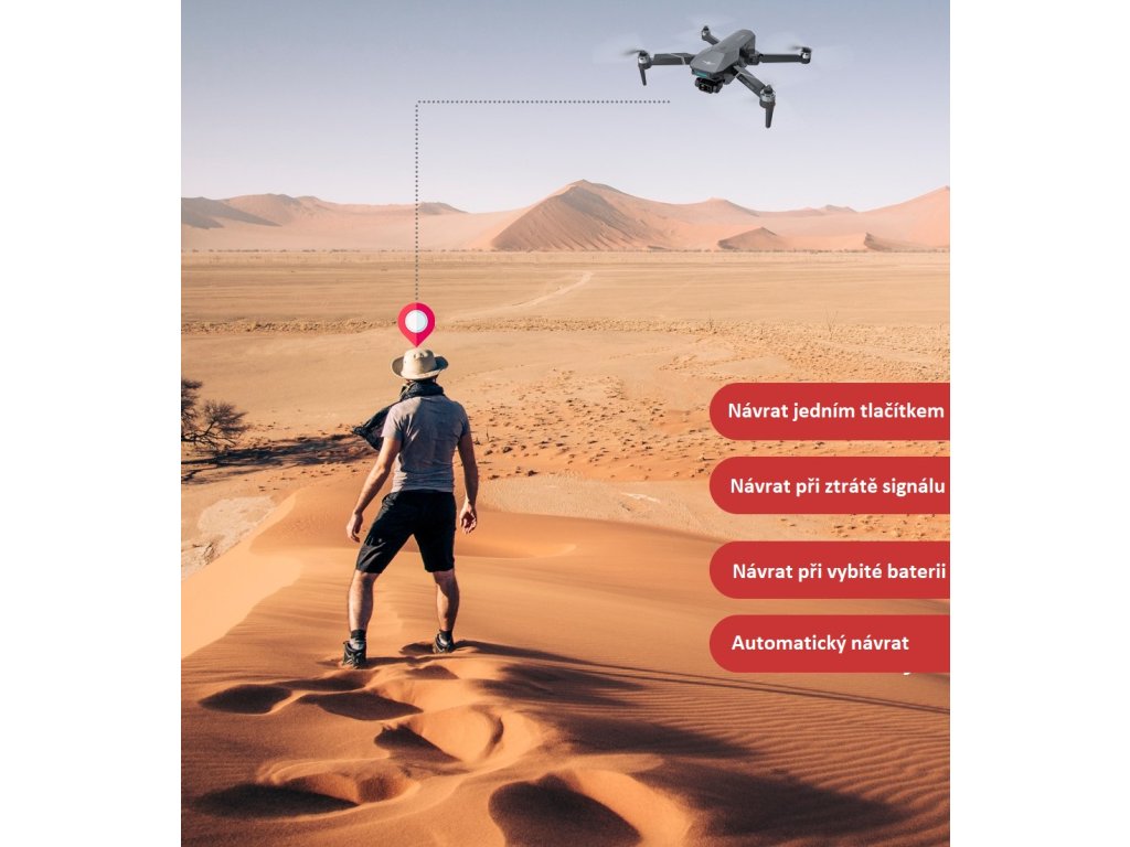 GPS modul zajišťuje lepší stabilitu a letové vlastnosti dronu, ale také umožňuje celou řadu pokročilých funkcí pro zábavu a bezpečnost. Dron si po celou dobu letu stále pamatuje svoji přesnou polohu místa, ze kterého vzlétl. To využijete například pro funkci návrat jedním tlačítkem. Funkci oceníte v okamžiku, kdy se od Vás dron vzdálí na větší vzdálenost a vy s ním ztratíte oční kontakt.