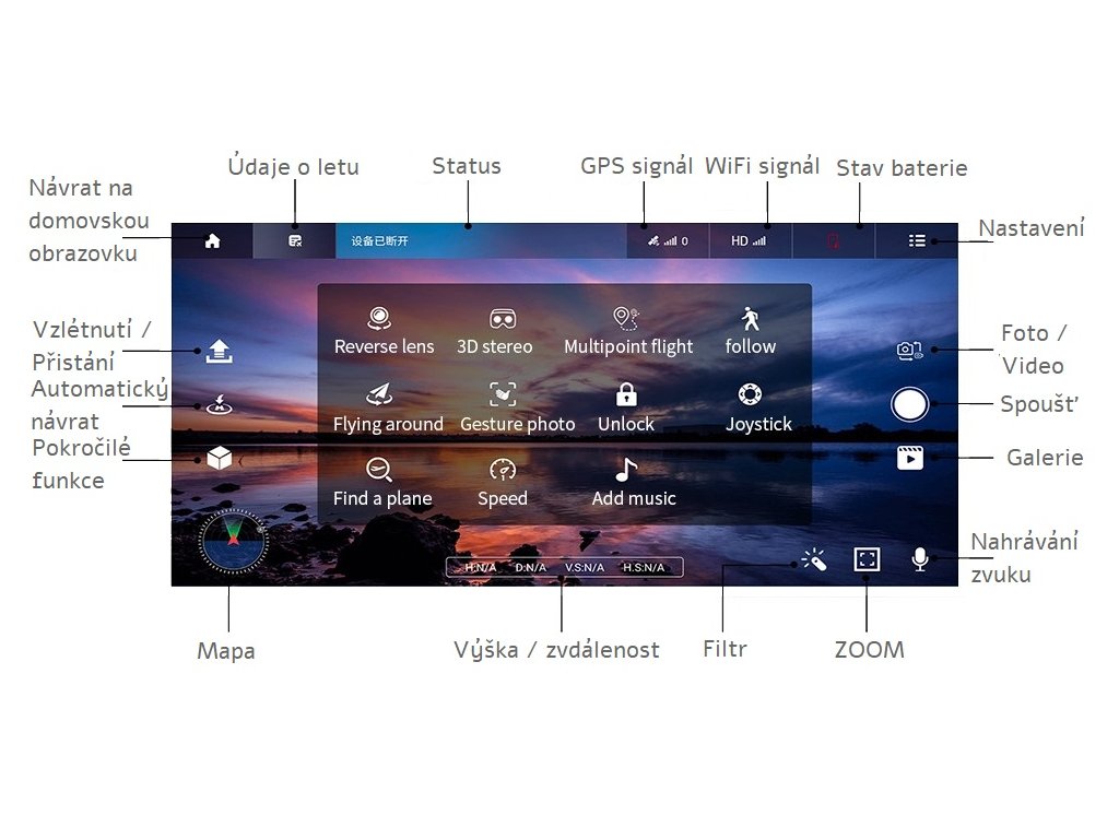 - úprava videa a fotografií během letu přímo v aplikaci