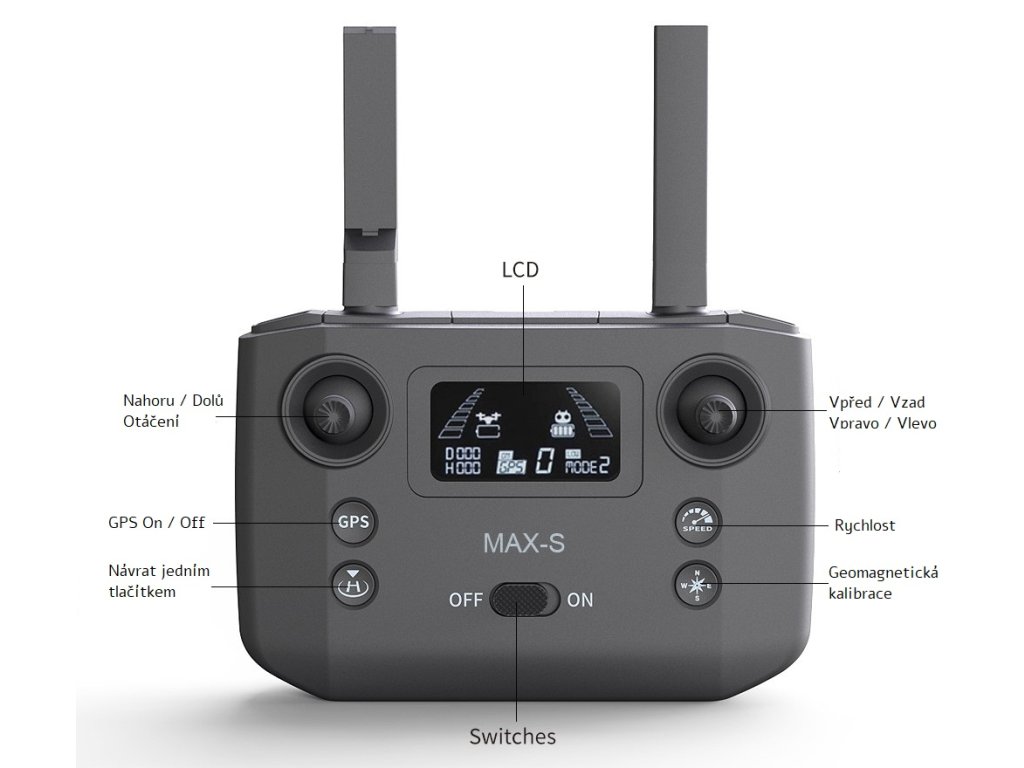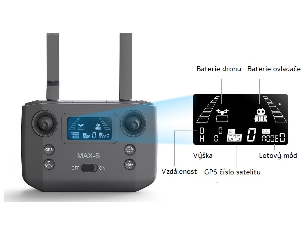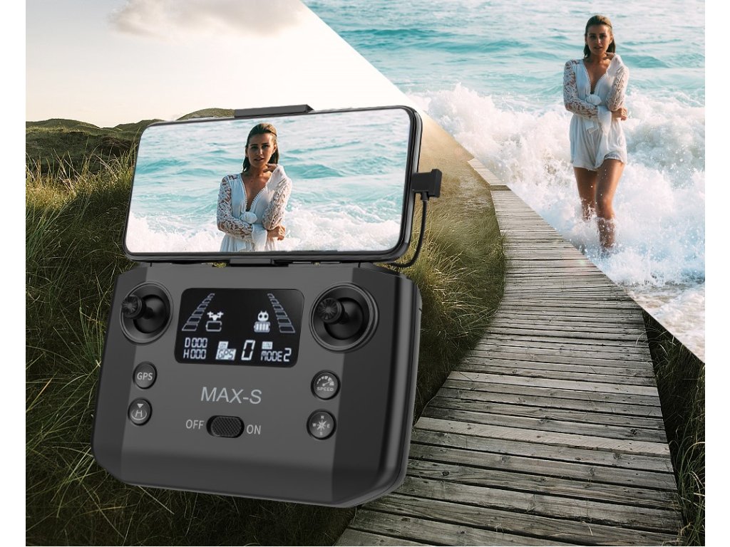 Dálkové ovládání dronu KF101 MAX-S je vybavené vlastní integrovanou baterií, podsvíceným LCD displejem s ukazatelem letových parametrů a držákem na mobilní telefon. Pro komunikaci mezi ovladačem a dronem se používá bezdrátová digitální technologii s dosahem až 5000metrů.