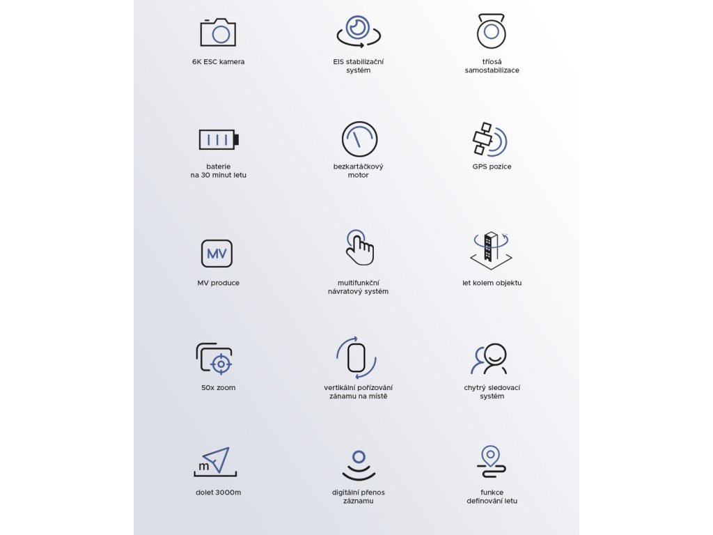 - baterie 3000mAh / 11,4V s výdrží 32min letu
