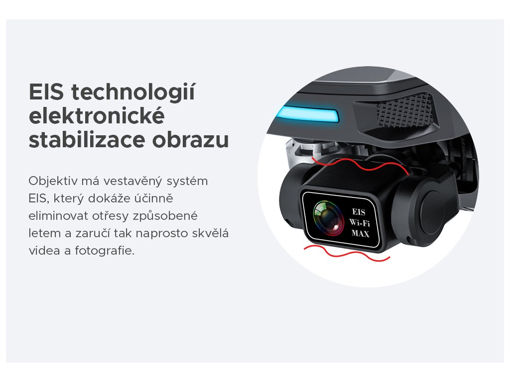 Při letu s dronem dochází často k prudkým změnám směru a výšky letu, stejně jako vychýlením vlivem poryvů větru ve velké výšce. Pro pořízení ostrých záběrů je tak stabilizace obrazu absolutní priorita.