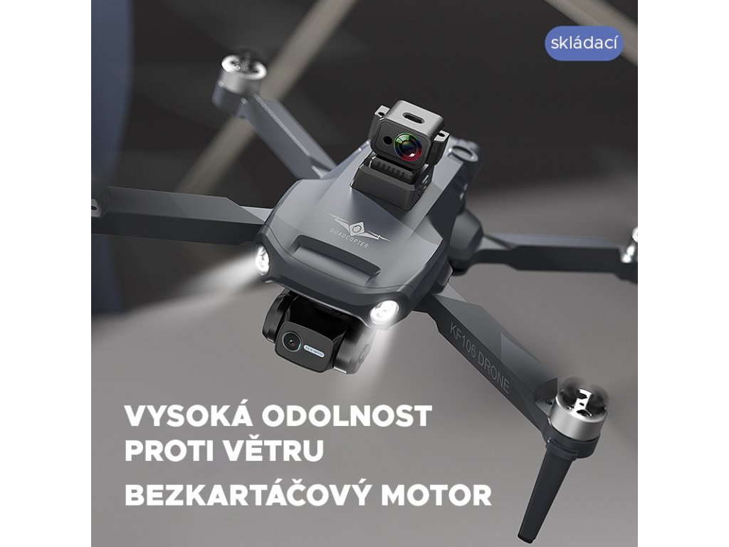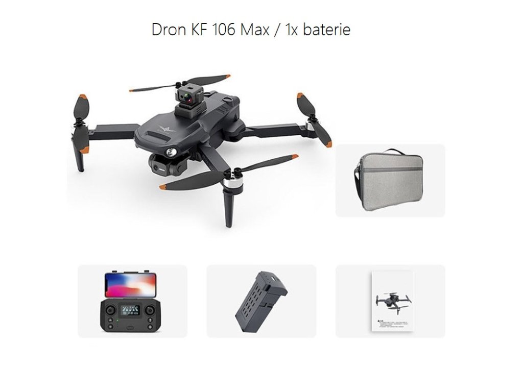 Dron KF106 MAX je stvořený pro zábavu při létání i pořizování skvělého videa a fotografií. Dron je vhodný jak pro začátečníky tak náročnější pokročilé piloty. Ve své kategorii přináší skvělé zpracování, dlouhou výdrž letu, výborné letové vlastnosti a pokročilé funkce. Se skládací konstrukcí, nízkou hmotností a přepravním boxem můžete vzít KFKF106 MAX s sebou úplně kamkoliv.