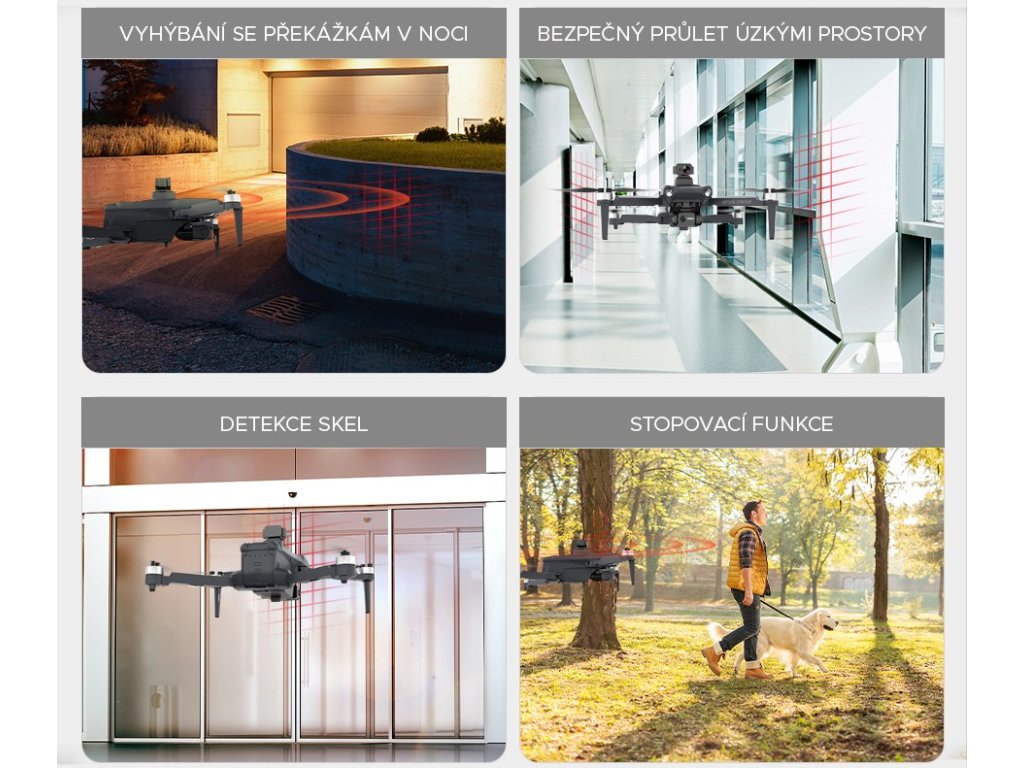 GPS modul zajišťuje lepší stabilitu a letové vlastnosti dronu, ale také umožňuje celou řadu pokročilých funkcí pro zábavu a bezpečnost. Dron si po celou dobu letu stále pamatuje svoji přesnou polohu místa, ze kterého vzlétl. To využijete například pro funkci návrat jedním tlačítkem. Funkci oceníte v okamžiku, kdy se od Vás dron vzdálí na větší vzdálenost a vy s ním ztratíte oční kontakt.