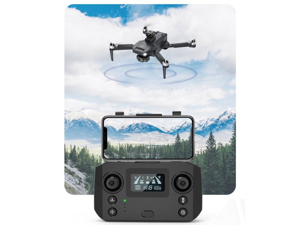 Dálkové ovládání dronu KF106 MAX je vybavené LCD displejem s ukazatelem letových parametrů a držákem na mobilní telefon. Pro komunikaci mezi ovladačem a dronem se používá bezdrátová digitální technologii s frekvencí 2,4GHz a dosahem až 3000metrů.