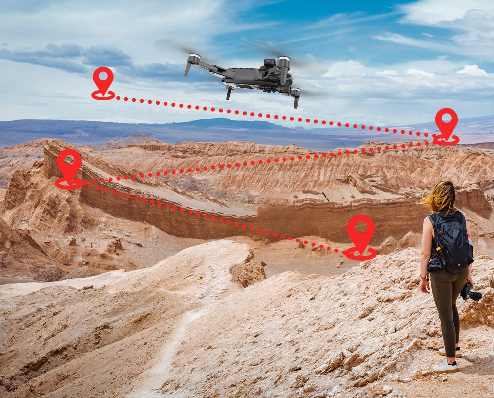 Visu L900 Pro je vybavený inteligentními letovými režimy pro dynamické, stabilní a vizuálně atraktivní záběry. Režim Follow Me automaticky sleduje váš pohyb a udržuje vás v záběru – ideální při běhu, jízdě na kole nebo pro rodinné momenty z dovolené. Funkce kroužení okolo objektu (Orbit Mode) nechá dron plynule obíhat kolem vybraného bodu a vytvoří tak profesionálně působící filmový efekt. A s funkcí traťový let (Waypoint Flight) si jednoduše nakreslíte trasu přímo v aplikaci a dron ji automaticky proletí – vy se mezitím můžete soustředit jen na kompozici a kreativitu.