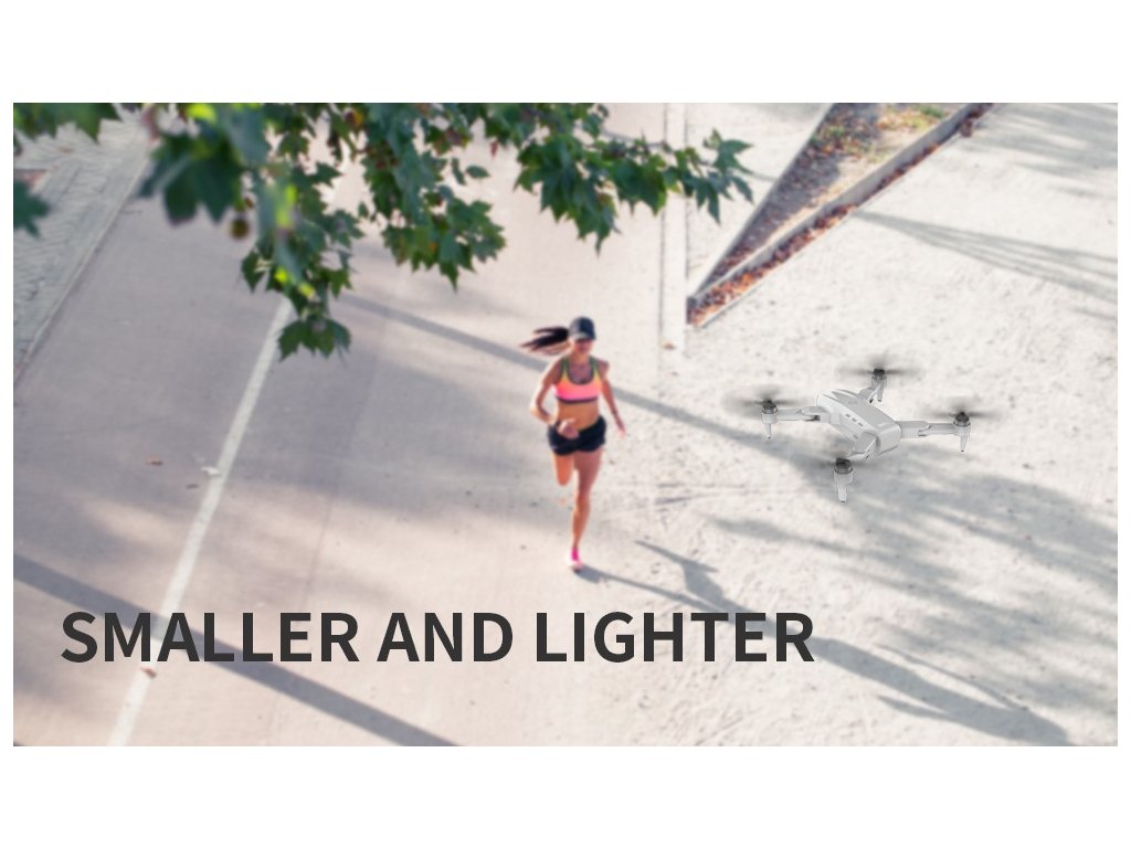 GPS modul s pokročilými funkcemi, širokoúhlá přední kamera s úhlem záběru 108° a rozlišením 4K, EIS elektronická stabilizace obrazu a ovládání úhlu záběru přední kamery přímo na dálkovém ovladači v rozmezí 0-90°.