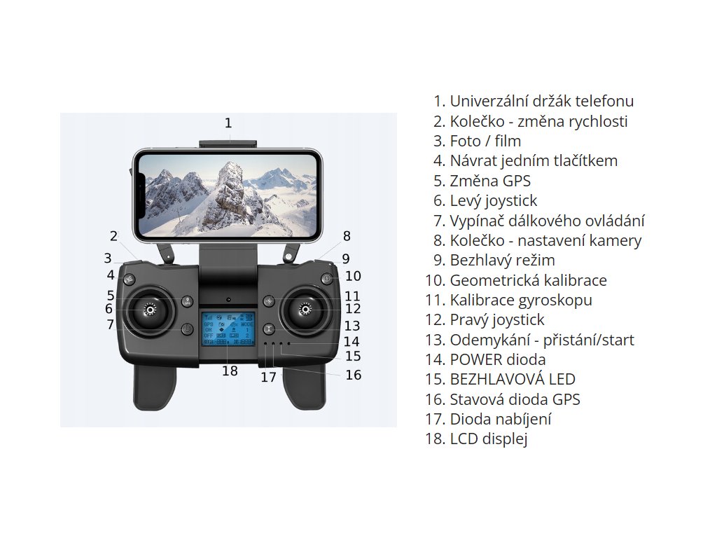 | Rozměry složeného dronu: | 13 x 10x 5cm |