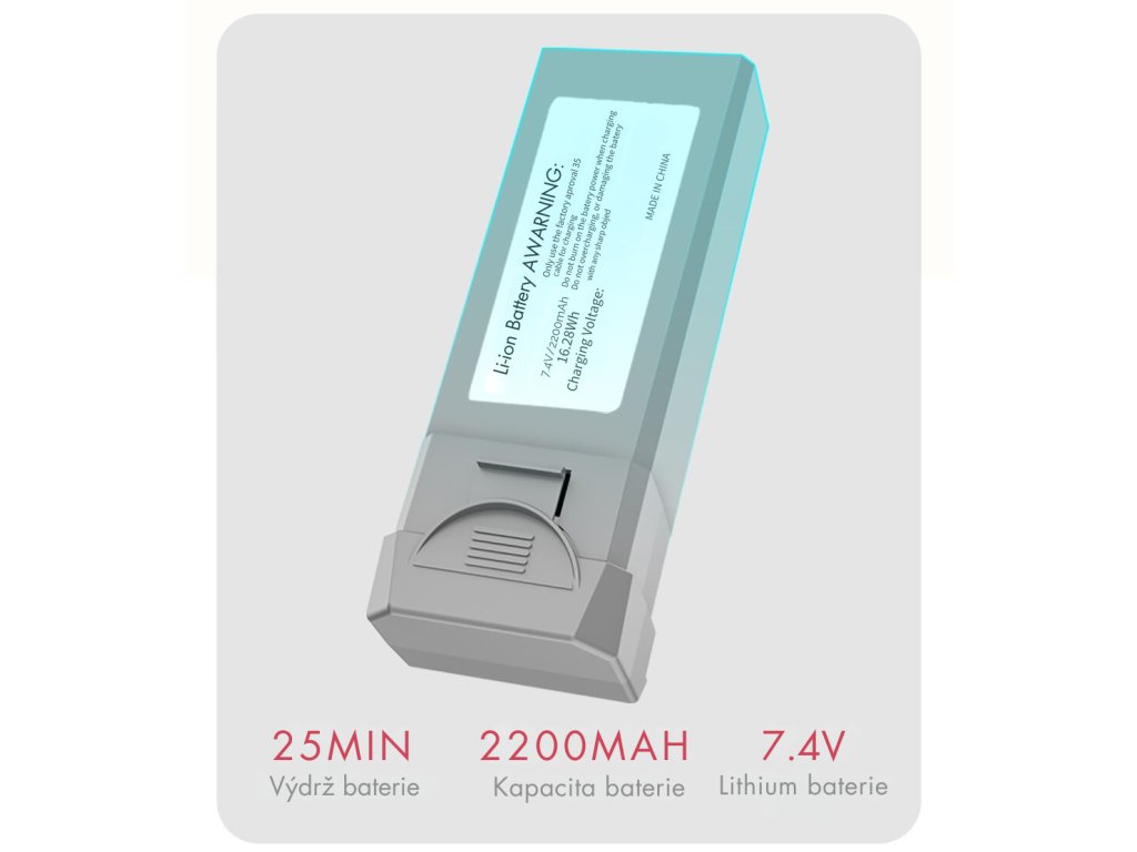 - 2200mAh baterie s výdrží až 25 minut letu