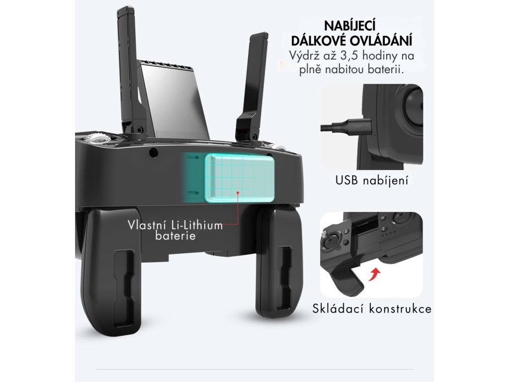 - dosah ovladače 1200m, dosah WiFi 500m