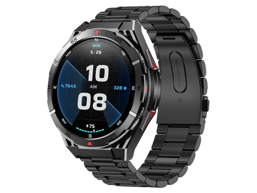 Chytré hodinky EVOLVE X2 Ultra s ocelovým pouzdrem, AMOLED displejem, tvrzeným Gorilla Glass 3 sklem a řemínkem z nerezové oceli.