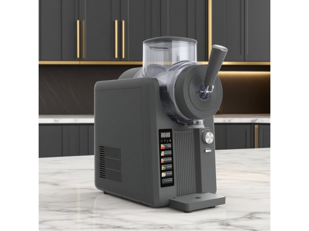 Ovládání výrobníku FROZZE SU-S03 je velice jednoduché. Stačí nalít směs a na barevném dotykovém LED panelu zvolit jeden ze 6 přednastavených programů - ledová tříšť, točená zmrzlina, mražený sorbet, chlazené nápoje, milkshake / frappé, čištění. Všechny programy si navíc můžete doladit doladíte ručně, přesně podle své chuti. Pokud chcete nápoje řidší nebo hustší, stačí otočit ovládacím kolečkem. Konzistenci nápoje nebo zmrzliny máte v mžiku k dispozici upravenou od jemně krémové až po dokonale hustou.