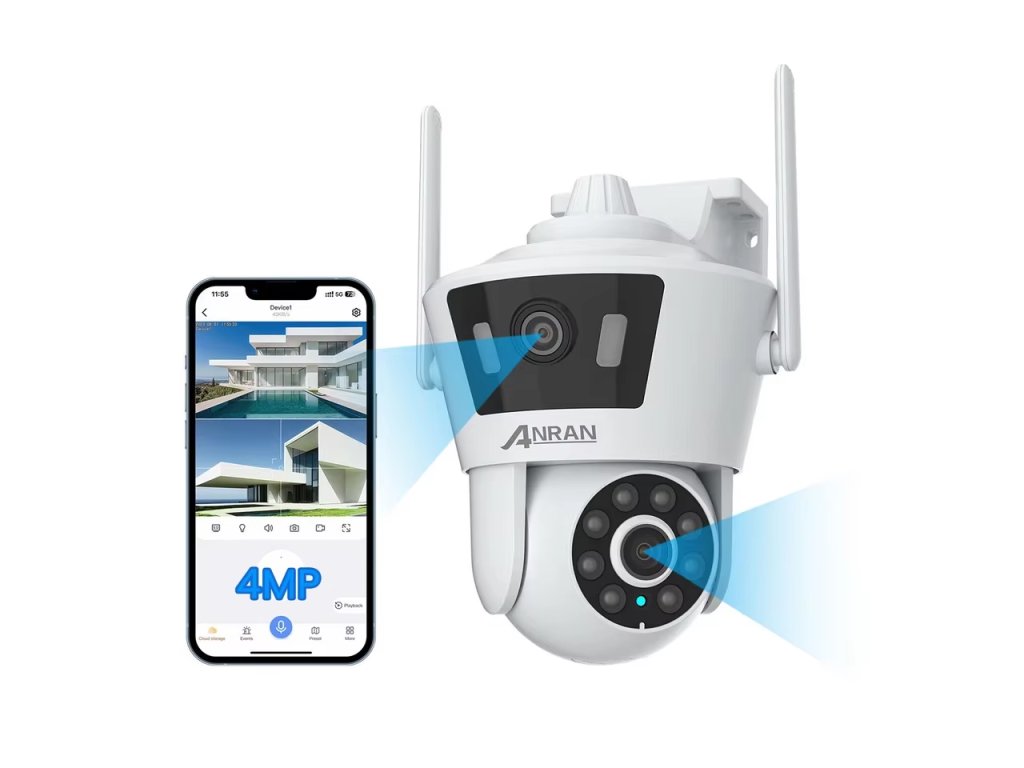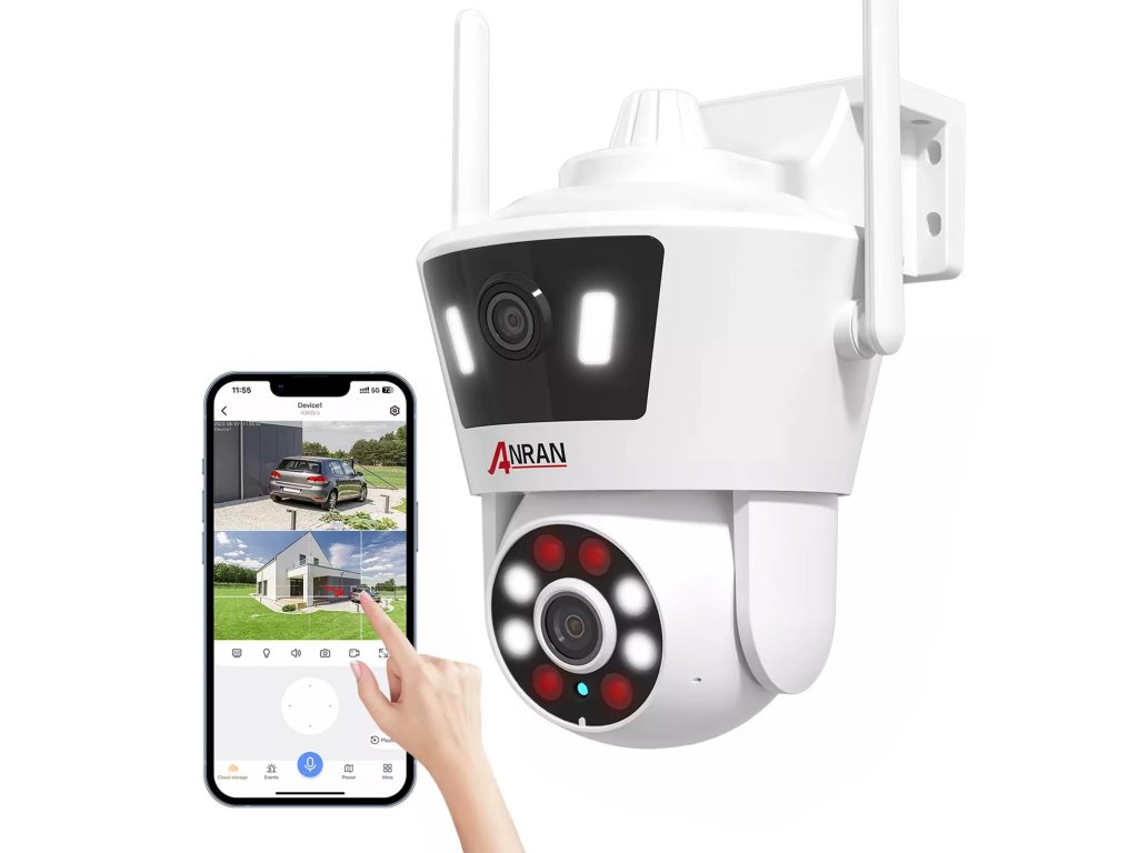 S bezpečnostní WiFi kamerou ANRAN P7 Max zabezpečíte svůj majetek a získáte nepřetržitý online přehled i nahraný záznam, ať jste kdekoliv. Díky bezdrátovému WiFi připojení a snadné instalaci to zvládnete doslova za pár minut. Model P7 Max má dva objektivy s rozlišením 4MP pro snímání širokoúhlého záběru a detailně přiblíženého záběru současně. Na jedné dělené obrazovce můžete zároveň sledovat dění před dome i přiblížené detaily - například SPZ vozidel nebo vchodové dveře.