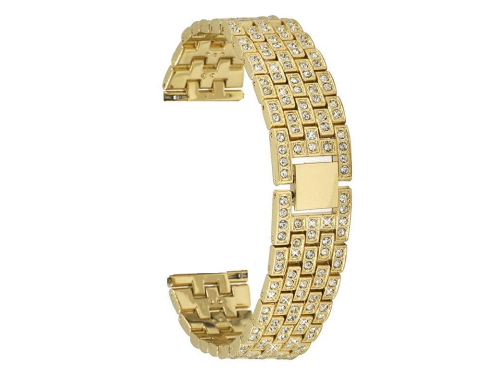 Kovový řemínek v barvě žlutého zlata s kamínky / šířka 18mm / nastavitelná délka na obvod zápěstí v rozmezí 10 až 18cm / / kompatibilní se všemi hodinkami, které mají šířku řemínku 18mm / uchycení vyměnitelnými osičkami /