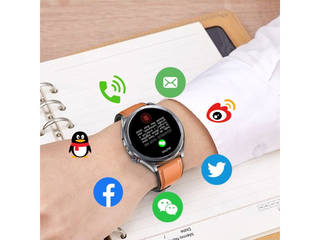Ve výbavě hodinek Lige HEALTH ET742 nechybí množství praktických funkcí, které Vám usnadní každý den - třeba komunikaci s rodinou a přáteli. Na těle ciferníku je mikrofon a reproduktor, takže telefonní hovory vyřídíte přímo ze svého zápěstí. Velkou výhodou je systém duálního bluetooth, kdy automaticky voláte přes zařízení, na kterém jste hovor přijali - bez zbytečného přepínání mezi hodinkami a telefonem. Upozornění na příchozí hovory zajišťuje vyzvánění nebo diskrétní vibrace a hlasitost hovoru si upravíte přímo na hodinkách. Kromě volání hodinky zobrazují také příchozí SMS zprávy, emaily a notifikace ze sociálních sítí.