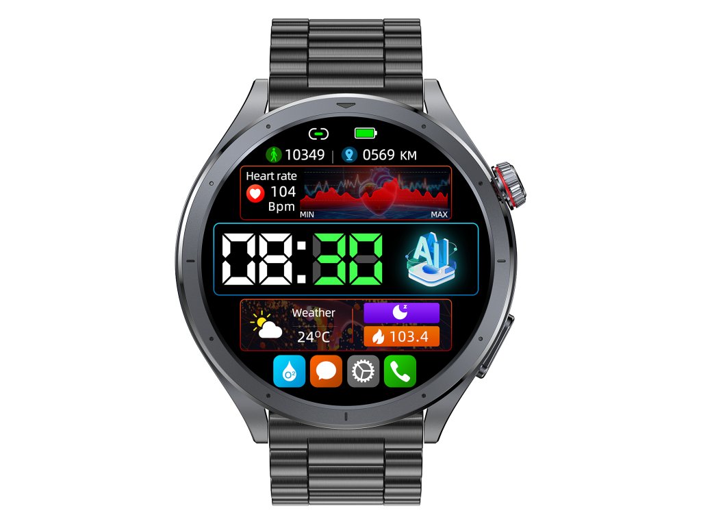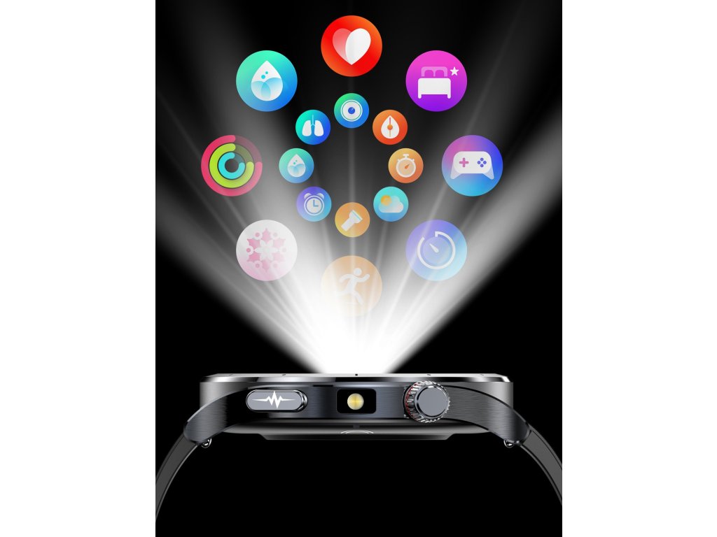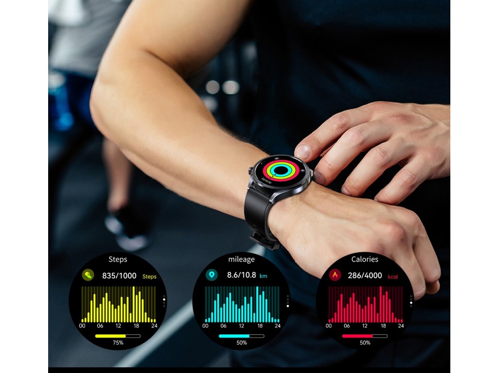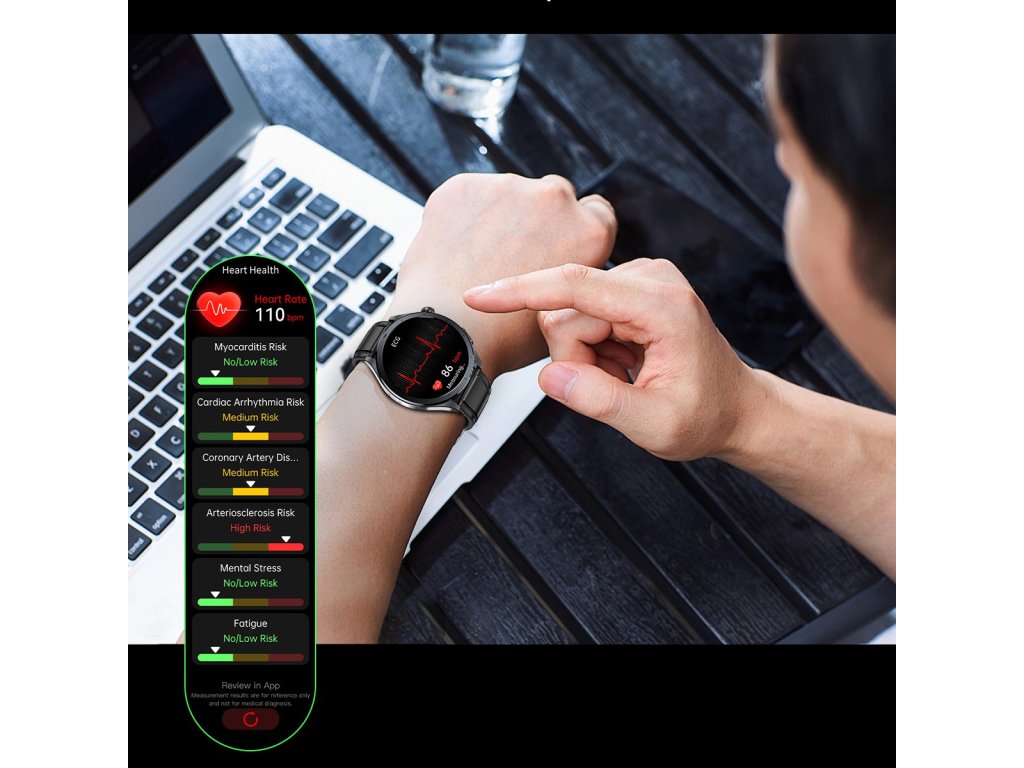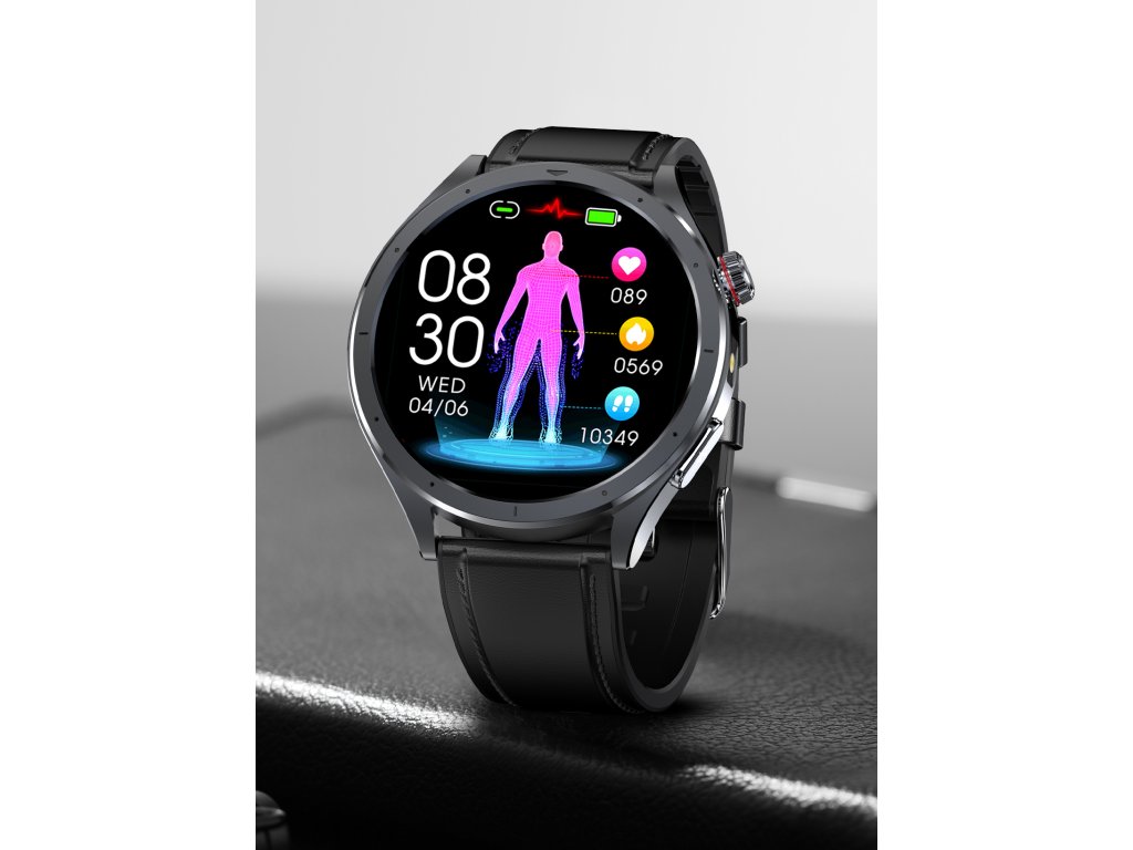 Chytré hodinky Lige HEATLH ET472 Fit s množstvím funkcí pro detailní analýzu pohybu i zdraví. Neinvazivní měření hladiny cukru v krvi, srdečního tepu, HRV, krevního tlaku, EKG, složek krve, složení těla, tělesné teploty, stresu, rychlosti metabolizmu, okysličení krve a kvality spánku.
