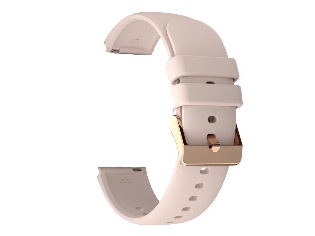 Silikonový řemínek v barvě rose gold (růžové zlato) určený pro hodinky s šířkou upnutí 20mm, vyrobený z hypoalergenního silikonu. Odolný a měkký materiál zaručuje pohodlí a komfort při celodenní nošení i sportu. Snadné a rychlé připnutí řemínku k hodinkám přes rychloupínací vyjímatelné osičky (součástí balení).